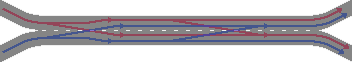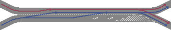 where drivers on the blue route that wish to remain on the blue route are forced to change from the lower lane to the upper lane