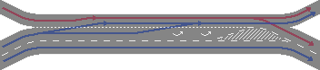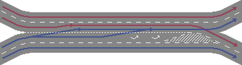traffic on the blue route not wanting to switch onto the red route can use the lower lane.